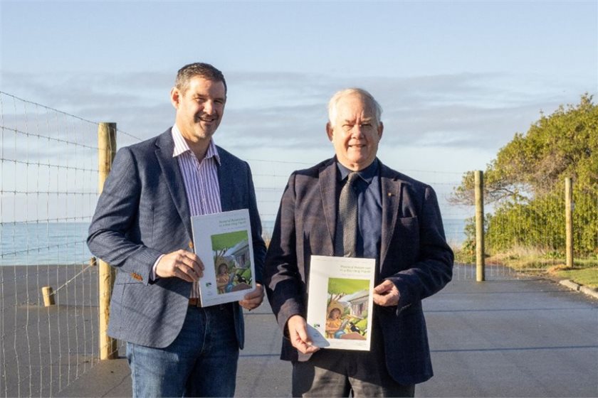 A collaborative resource to help people in South Canterbury navigate living during climate change was launched last month by the two councils, via an online document. Timaru District Mayor Nigel Bowen and Waimate District Mayor Craig Rowley received some of the first physical copies.