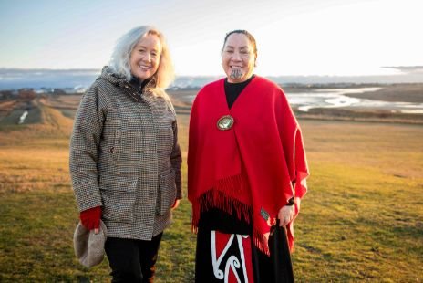 Professor E Jayne White and Dr Ngaroma Williams from the Faculty of Education at Te Whare Wānanga o Waitaha | University of Canterbury, taken on site at Waitarakao during Matariki this year. (Photo/Supplied) |