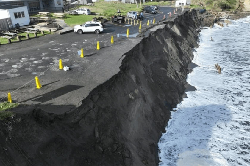 | Erosion at the Sunset Beach carpark in Port Waikato. PHOTO: Waikato District Council/Facebook |