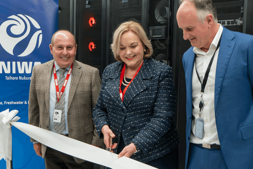 | Science minister Judith Collins 'cuts the ribbon' on the new supercomputer |