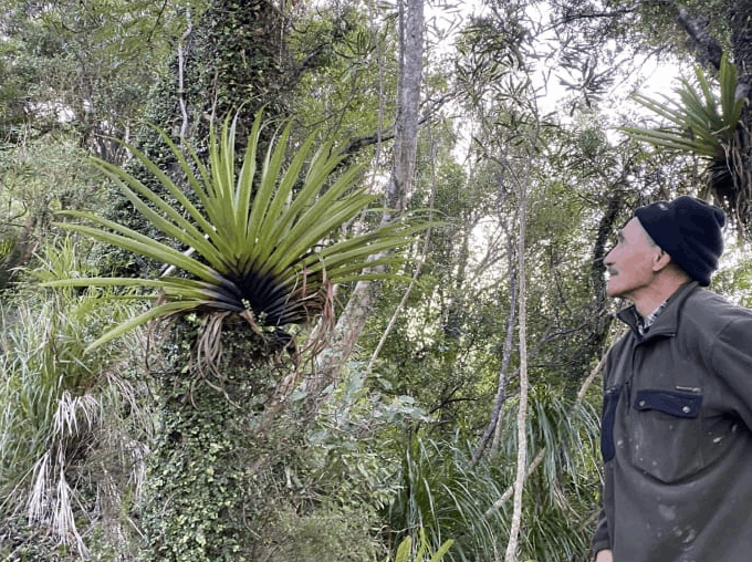 Te Kautuku Station land manager Rangi Raroa admires local taonga species at Te Kautuku. Image supplied |