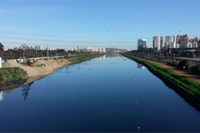 A major river in the Brazilian metropolis of Sao Paulo is suddenly emerald green and clear skies this week turned from blue to grey.