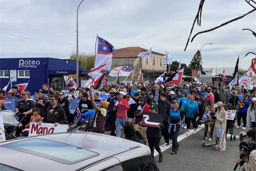 More than 300 protestors filled the main street of Pātea. PHOTO: Te Korimako o Taranaki |