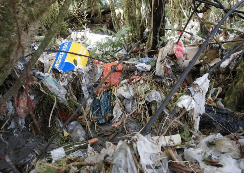 Waste from Fox Glacier landfill after flooding in 2019 |