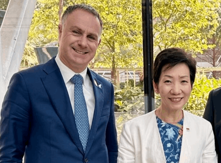 Climate change minister Simon Watts with Singapore’s minister for sustainability and environment, Grace Fu. |