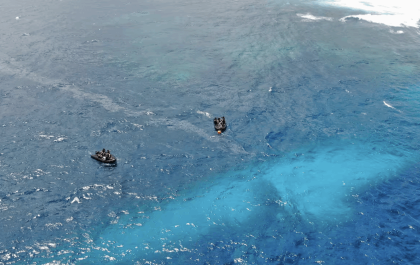 Royal New Zealand Navy naval divers on the scene above HMNZS Manawanui, off the Southern Coast Of Upulo. Photo / New Zealand Defence Force |