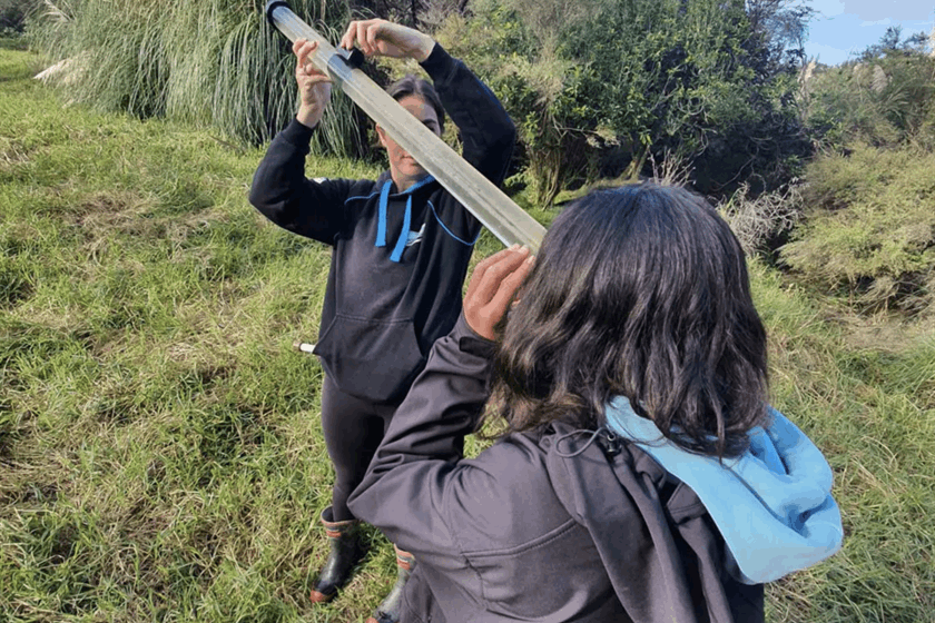 | Pouto School received $3000 ELF funding for its project Ngā Kaitiaki o Pouto: Wetland Guardians. They are pictured testing water quality. |