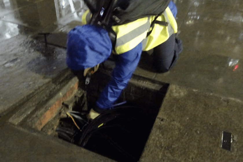 | An activist cuts cables in the City of London. Photograph: Shut The System |