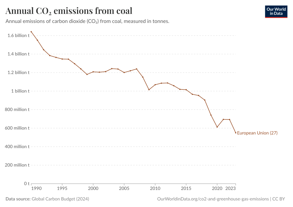 EU emissions from coal fell another 13% in 2024 (not shown).