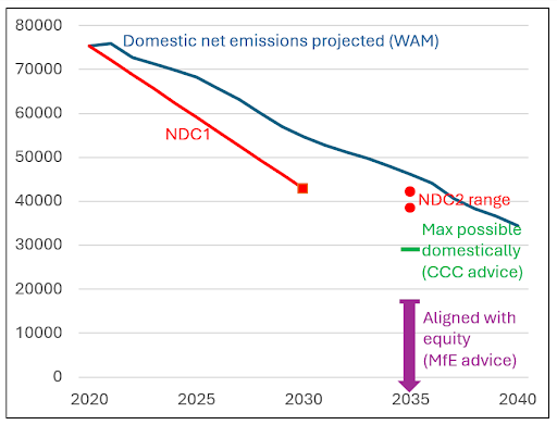 2. Does not reflect equity considerations: Ministry for the Environment analysis showed that a target of over 80% reduction would be required for strong alignment with equity principles.