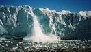 Glaciers move when melting occurs from the effects of global warming, causing masses of ice to slide into fiords and the sea.