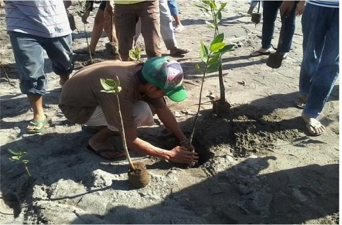 Planting mangroves in the Philippines to restore forests. |