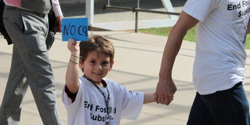 Hope for the future at a protest in Rio de Janeiro, Brazil, against fossil fuel subsidies. |